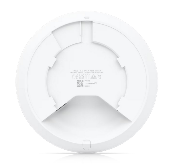 El Ubiquiti U6+ se alimenta mediante un adaptador 44–57V DC (no incluido) y cuenta con indicadores LED blancos y azules para un fácil monitoreo del estado del dispositivo. Además, posee certificaciones CE, FCC e IC, garantizando cumplimiento con los más altos estándares internacionales de calidad y seguridad.